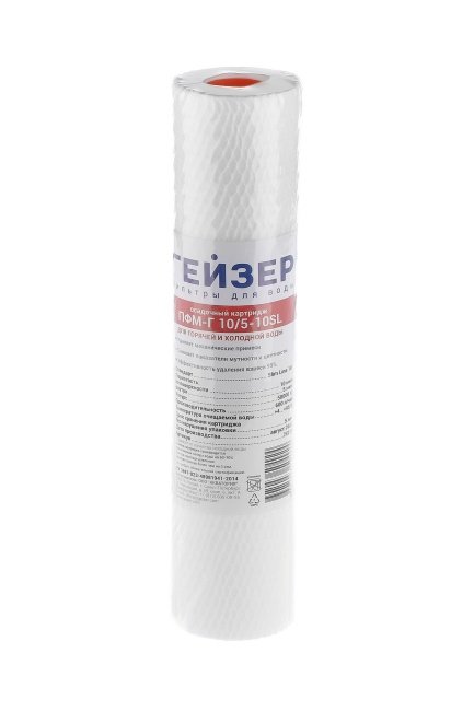 Картридж ПФМ-Г 20/10 10SL предназначен для очистки горячей воды от нерастворимых примесей. В отличие от PP обладают градиентной пористостью: диаметр поры уменьшается при движении воды внутрь картриджа, позволяя работать всему объему фильтрующего материала. У картриджей есть модификации для горячей воды. Не восстанавливаются и не регенерируется.